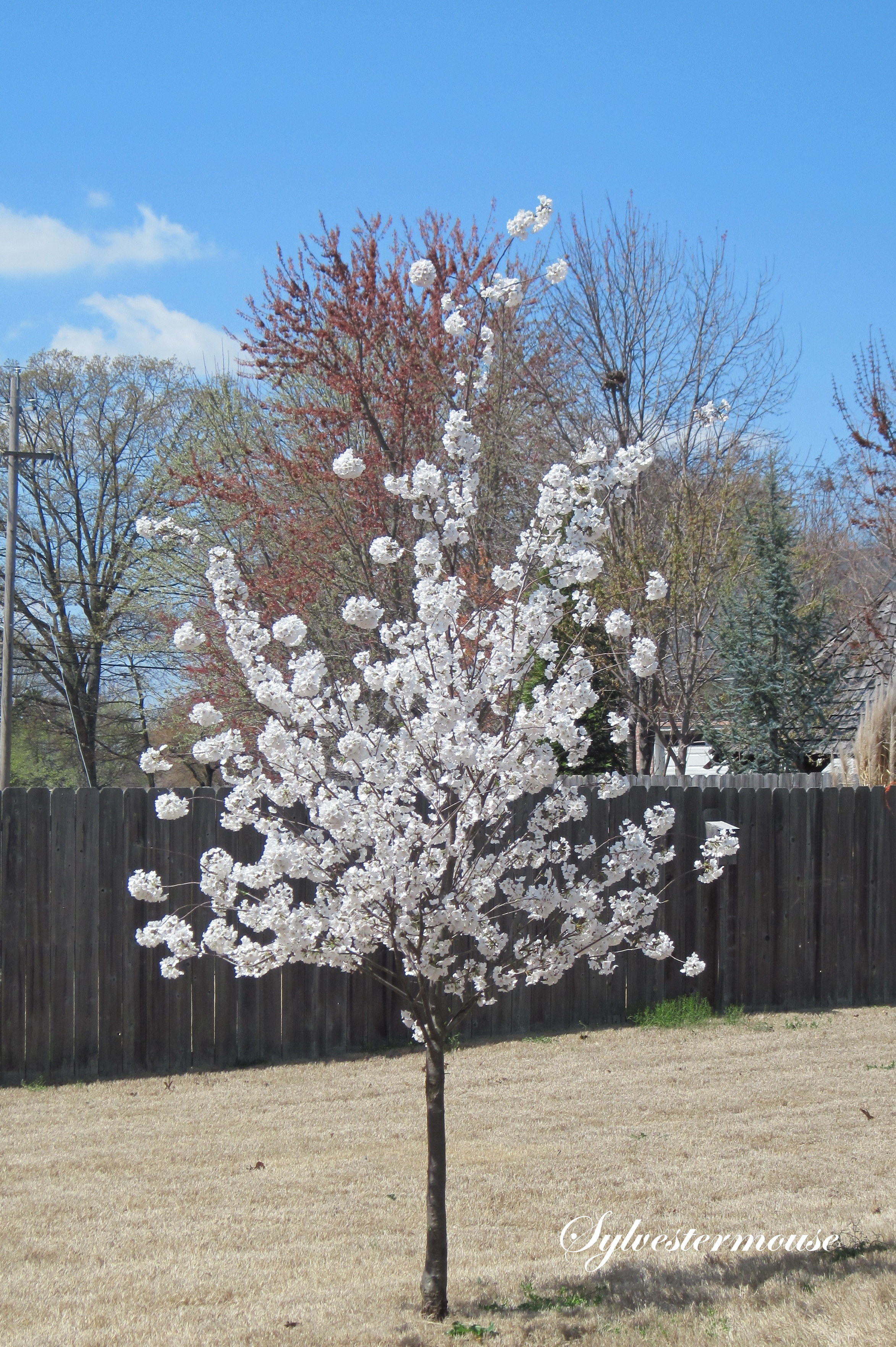 One of our neighbors has an adult Yoshino Cherry tree in their yard and we have spent the last 15 years enjoying it’s blooms, but this year we had our own.